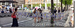 Vi amorister gjorde reklam för amorism på fredligt sätt utan att störa. Många åskådare och olika demonstranter (för respektive emot Sverigedemokraterna) kunde inte komma fram till torget. Nationalister möts nuförtiden i många fall av våldsamma motdemonstranter. Åkesson skyddades mot motdemonstranter av ett stängsel och ett tiotal polisbussar. En frizon framför Åkesson fanns som säkerhet, se bild ovanför. Mötet började vid kl. 18. Norrmalmstorg var avspärrat en tid före mötet samt under och en tid efter. Även Hamngatan och Smålandsgatan som går vid torget var avstängda. När man upplever våld och mötesstörning så förstår man att somliga inte vill ha demokrati och yttrandefrihet. För dem betyder “demokrati” och “yttrandefrihet” endast att de själva och deras egna vänner får yttra sig och bestämma. Andra får inte yttra sig och ha demokrati, man “får” störa andras möten. Om alltför många tänker så så skulle demokratin upphöra.