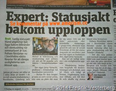 - Kravaller i Rinkeby ( Stockholm), Göteborg, Malmö. Översta bilden visar artikel i tidningen Metro den 14-08-26 som bekräftar mina uttalanden och idéer. Somliga anser tydligen att det är gott eller status-höjande att vara kriminell, “hård” eller annat. Man bör dock inte enbart skylla på dem. Även när stater krigar så innebär det att någon eller alla stater nedvärderar hela rättsväsendet i motståndar-staten.
